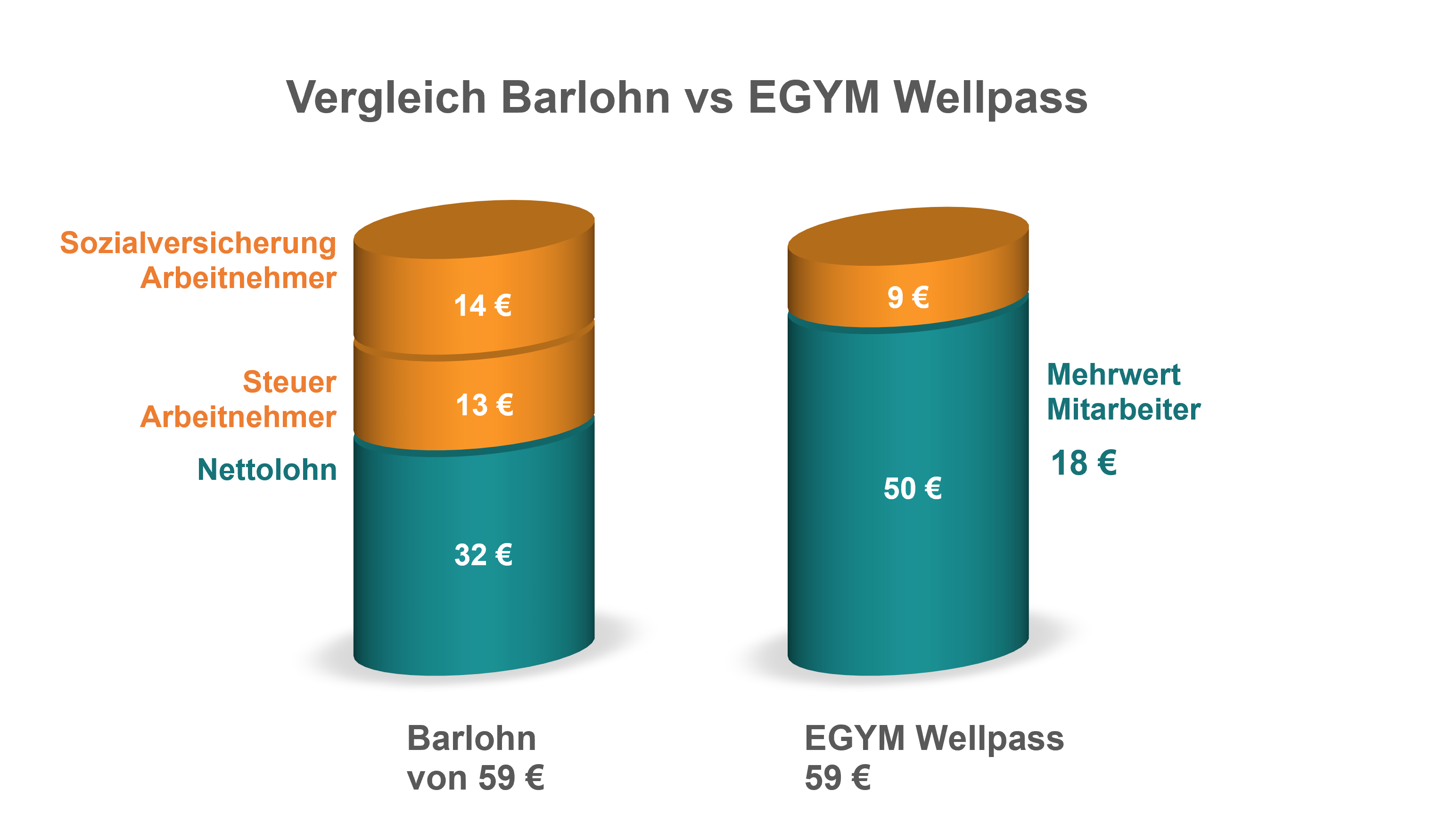 Für den EGYM Wellpass können Sie einen monatlichen Zuschuss in Höhe von 50,00 Euro auswählen. Der Brutto-Mitarbeiteranteil sind 20,22 Euro.