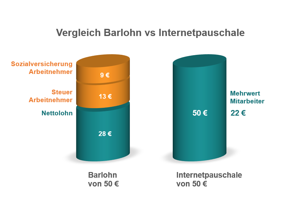 Die Nutzung der neuen Medien kann vom Arbeitgeber bezuschusst werden. Hierbei gibt es eine monatliche Obergrenze von 50 Euro. Auf den Betrag fällt eine Pauschalsteuer an, die der Arbeitgeber trägt. Als Mitarbeiter müssen Sie bestätigen, dass Ihnen Kosten in Höhe von maximal 50 Euro pro Monat für die Internetnutzung entstehen. Die Kosten beinhalten auch die Anschaffung von Geräten, Grundgebühren usw. Sofern Sie über keine eigenen Geräte und keinen Internetanschluss verfügen, können Sie das Guthaben auch im Internetcafe nutzen. Für die Pauschale bis 50 Euro benötigen Sie außer einer unterschriebenen Bestätigung keine weiteren Nachweise.