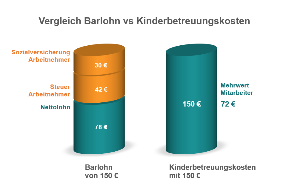Keine Steuer- und Sozialversicherung. Die Kosten, die der Arbeitgeber Ihnen für Kinderbetreuung erstattet, können Sie NICHT MEHR in Ihrer privaten Steuererklärung geltend machen.